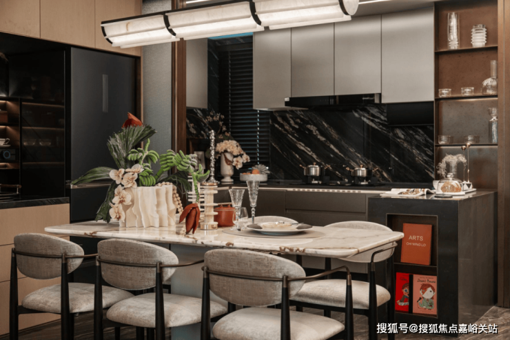 另外,翎翠滨江通过大量的奢石、隐藏式细节将整个室内打造成了艺术的殿堂。