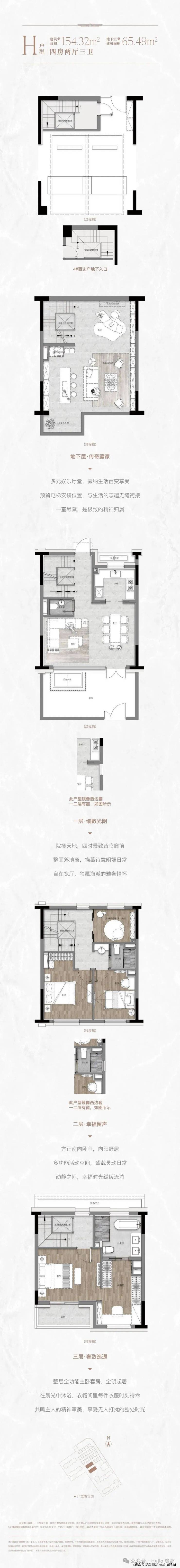 華玥·H户型·建筑面积约154.32㎡,地下室建筑面积约65.49㎡