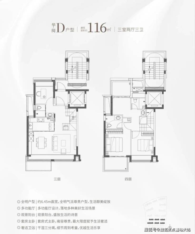 同样是3房2卫的配置,功能性与舒适度兼具。