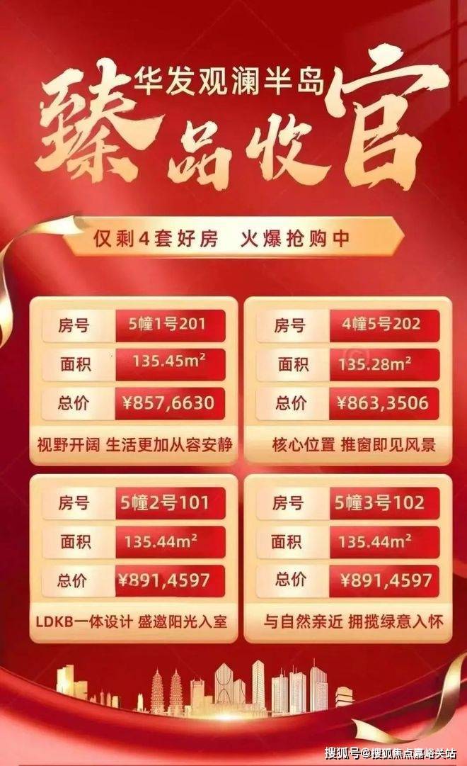 华发观澜半岛售楼处电话:400-8824-198令人始料未及却又万分惊喜的是,据最新消息,【华发观澜半岛】在清盘前夕,还有4套建面约136㎡6层真洋房可买,总价仅约850万级,最后席位,认购从速,错过再无!