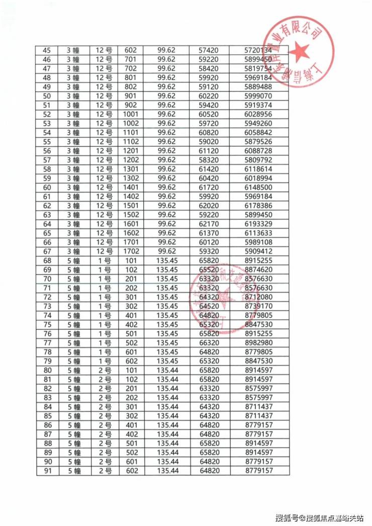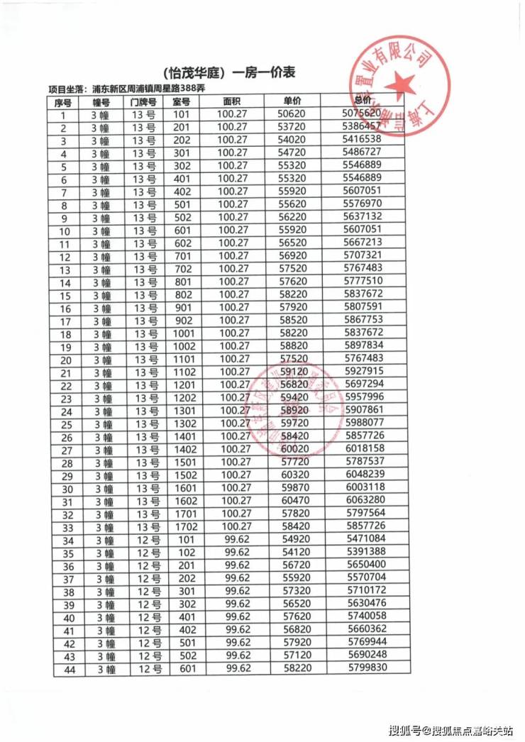 项目一房一价表▼