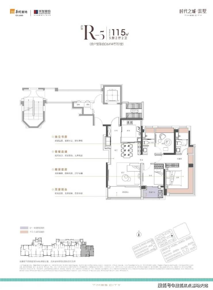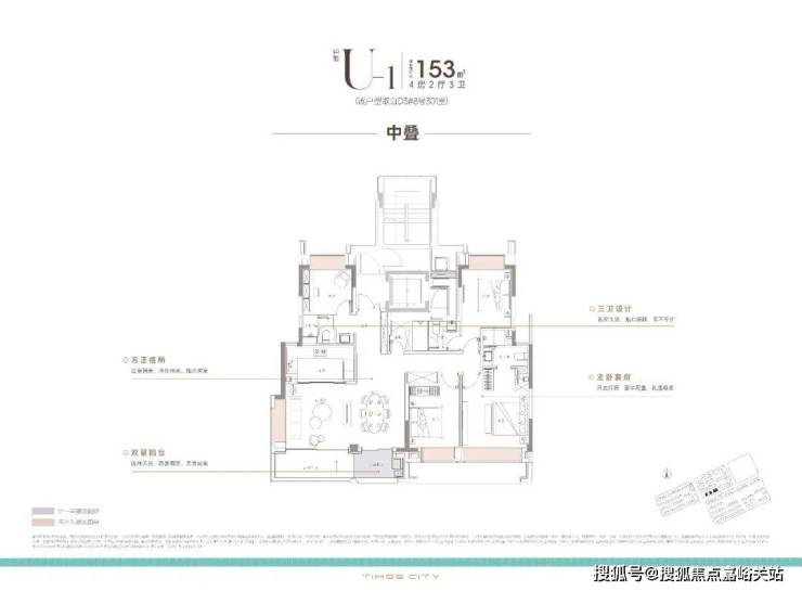 项目的中叠 四开间朝南,超大IMAX的采光面,妥妥市区豪宅大平层的尺度感。