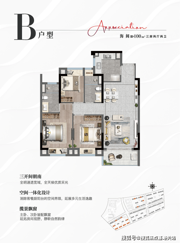 上实•听海推出了全生命周期户型产品,以空间一体化的设计,消除一定的空间界限,用更科学的空间尺度诠释改善人居的可能性,更以全飘窗设计,更好的感受超大海景界面带来都市难寻的瞰海居住体验。