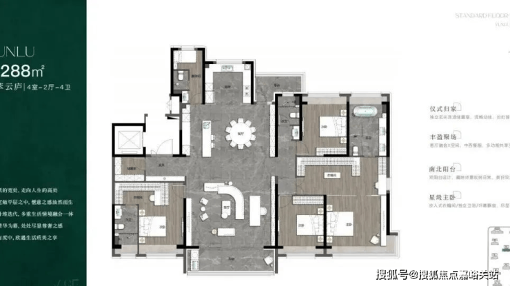 不仅做到了200㎡的尺度突破,成为全区超大平层的唯一供应,更是带来了约288㎡的超大平层孤品奢宅。