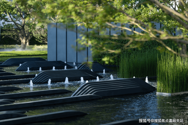 项目景观团队使用新加坡景观设计团队CICADA诗加达,采用引江入园、以水带路的手法,将滨江舒阔的国际生活平移到社区内,打造约3000方水景、6万㎡景观秘境,媲美全球奢华酒店。
