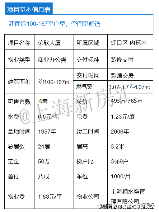 单价4.4万起 入驻虹口内环城芯区域