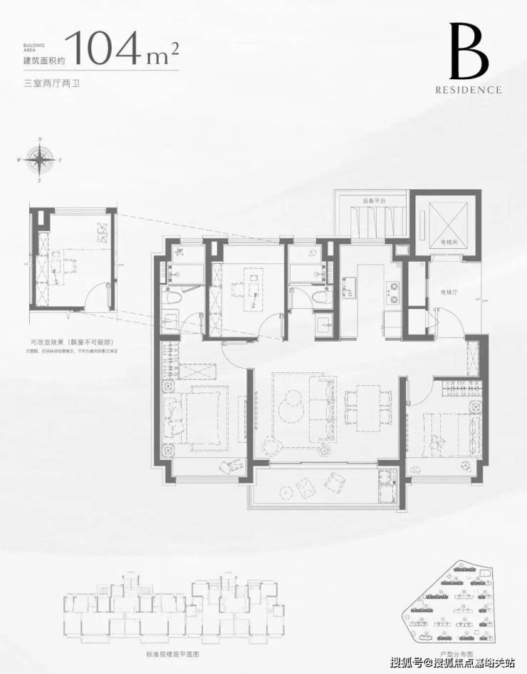 【招商中旅·揽阅】共计规划17栋12-14F小高层,首开楼栋位于整个项目的北侧,共3种户型,分别为建面约96㎡三房两卫、建面约104㎡三房两卫、建面约135㎡四房两卫。3种户型提供了全生命周期成长空间的方案。