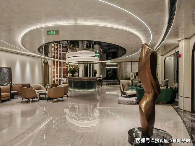 N+奢石铺装,从地面到公区,地下三层入户大堂荟萃普拉达绿石材、温哥华海石材、东方白石材、莫奈灰石材,特殊玻璃等,大手笔低营造调奢华的空间气场。