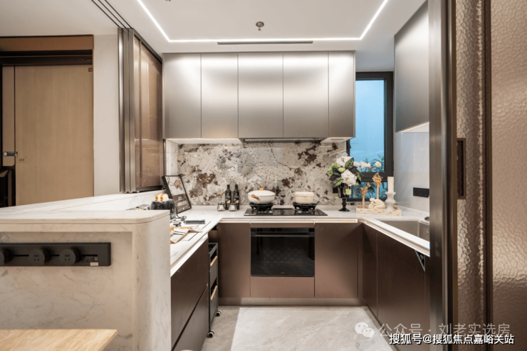 常规厨房平台无法利用的空间死角,在这里也被合理使用,节省出 1-2㎡的收纳空间,实打实的获得了房价价值