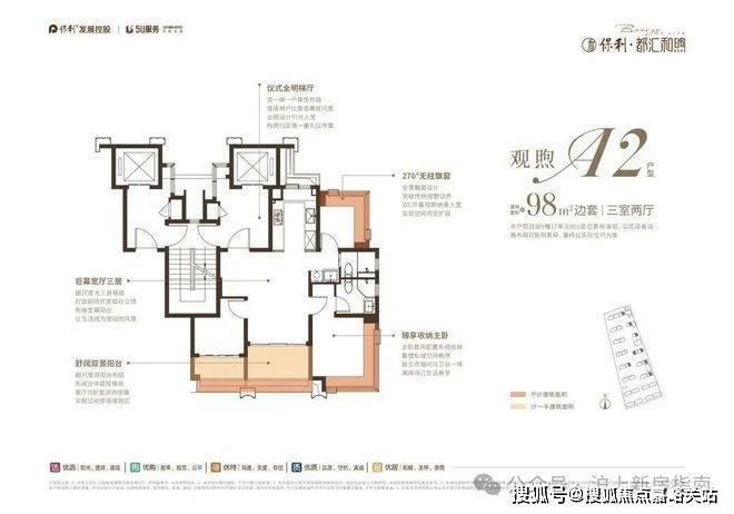 小高层类一梯一户、三阳台设计(部分户型) 、270°无柱飘窗(部分)