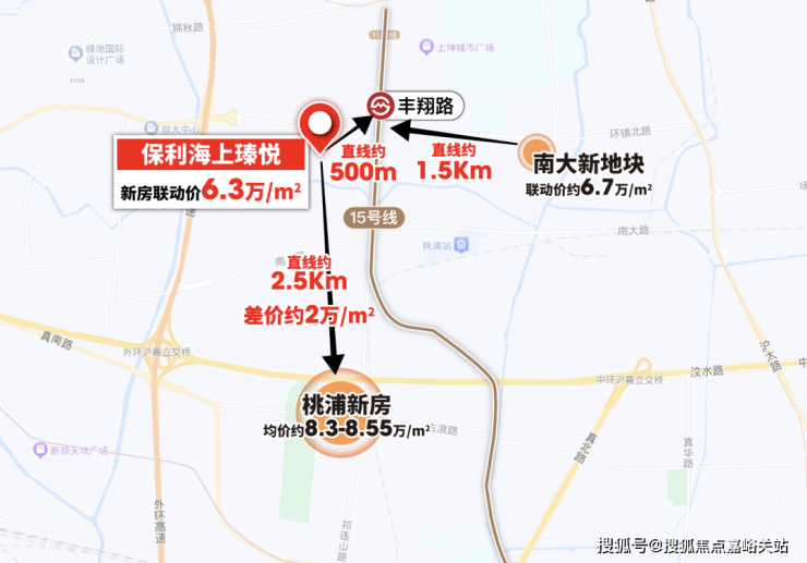 它的价格优势,相较于同环线、同轨交,甚至同板块也都非常明显!相较于同一板块、距离丰翔路地铁站更远的金茂新盘,房地联动价6.7W/㎡,保利·海上瑧悦倒挂4K/㎡,亦属于南大目前的价格洼地。