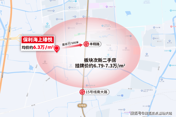 从同价格段的项目看,保利·海上瑧悦,地段更好距离市区更新!从地图上就能明显的感受到,6字头真地铁房,保利·海上瑧悦的区位要明显优越得多!联动价约6.3万/㎡的保利海上瑧悦,直线距离中环线只有约3.2km,与南山前湾拾缦、招商虹桥公馆三期、颛桥紫薇花园等项目到市区的距离相近,价格上也更具有优势!