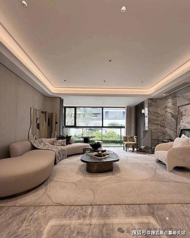 海上清和玺售楼处电话:400-856-9058☑️☑️电视背景墙采用卡慕白的石材+皮革造型,弧形吊顶,相当讲究,连空调出风口的形状都打造为海上·清和玺logo山茶花的形状~~三大件为大金(或同等档次)中央空调和地暖海上清和玺售楼处电话:400-856-9058☑️☑️,新风系统为百朗(或同等档次),南向阔景阳台,采光视野一级棒!海上清和玺售楼处电话:400-856-9058☑️☑️