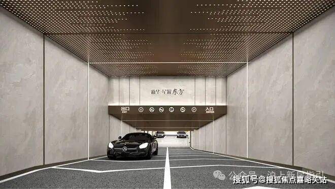 入口对行人、机动车进行优化分流,保障业主安全;而地面停车位,方便参观者、业主等临时停车的需求。另外在车库上,项目还打破了常规地库的单调、晦暗。直接将豪车专属的星空顶搬入了地库里。从车行驶入地库的那一刻开始,一场名为“宏大”的归家之旅就开始了。通道入口,顶部优雅的星空放射灯,展现出浩瀚星空般的深邃、璀璨,搭配两侧的高级铺面材质,尽显奢华气质。