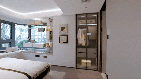 归家风雨连廊:采用当下豪宅新盘才运用的风雨连廊,打造风雨无阻的归家体验的同时,也连接着社区核心景观节点和功能空间,大大增加小区景观的空间体验。