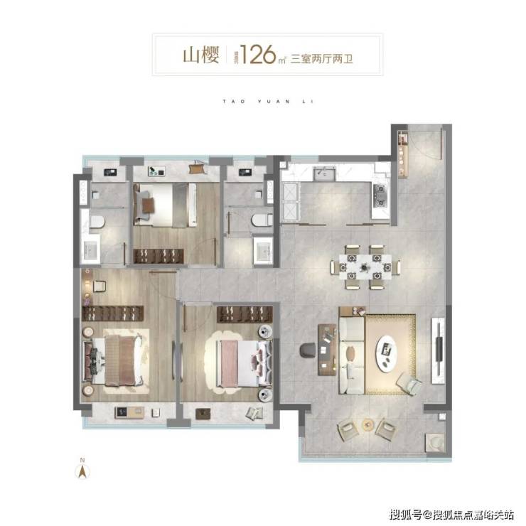 户型设计 充分考虑了现代家庭的需求:从83㎡两房到178㎡四房,全系列产品覆盖了不同阶段的置业需求。其中,106㎡三房两卫和126㎡三房两卫是主力户型,采用南北通透设计,户型方正,动线合理。