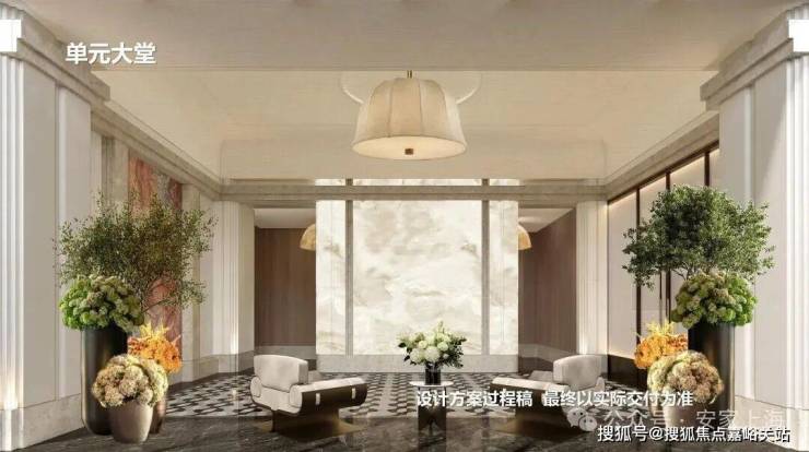 公区方面,从归家社区大堂、大堂序厅、以及入户单元大堂一路看过来,体现出一套脉络完整,层层递进的海派顶奢设计语言。