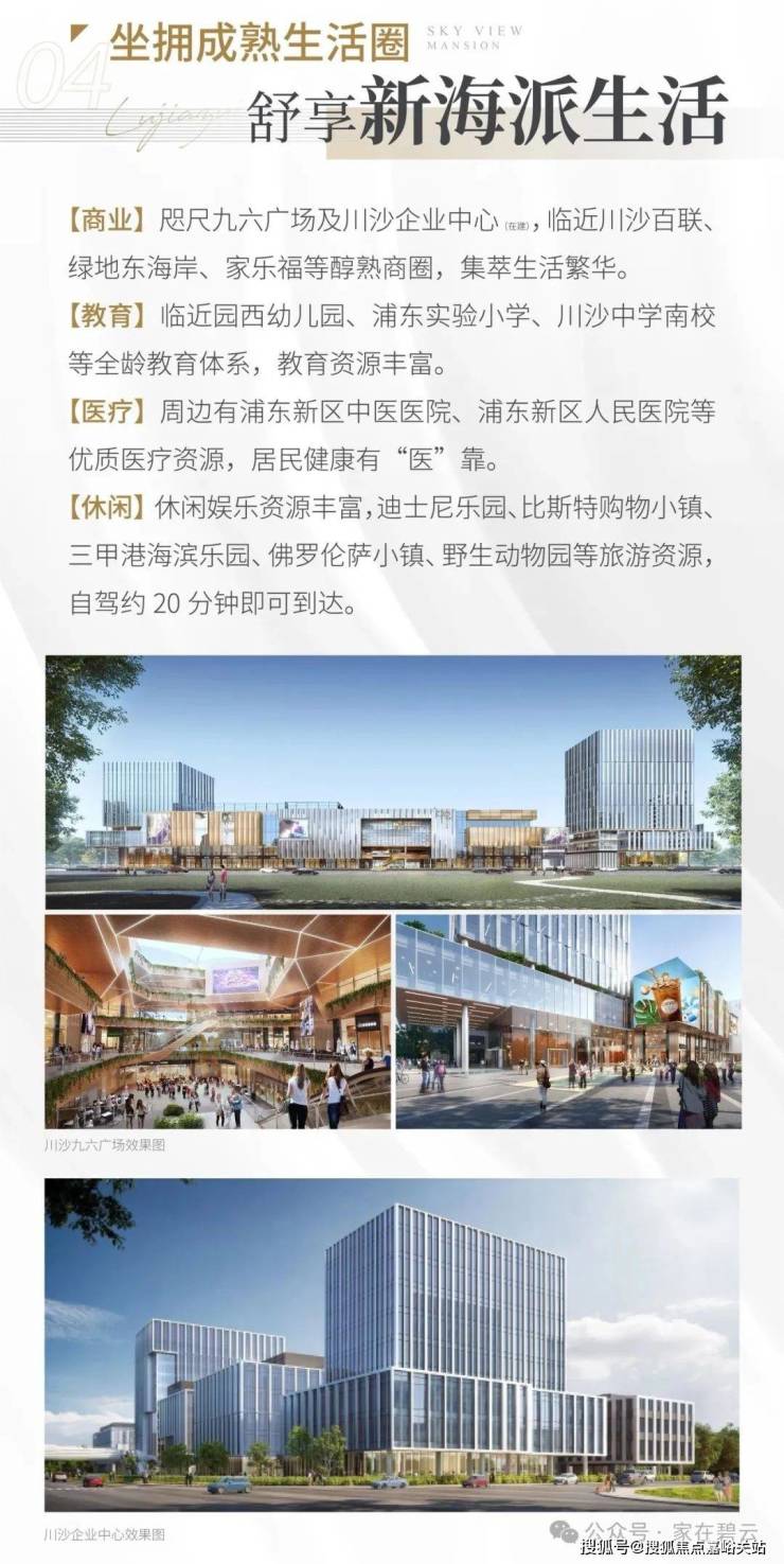 商业配套:川沙百联、绿地东海岸国际广场、家乐福 在建九六广场
