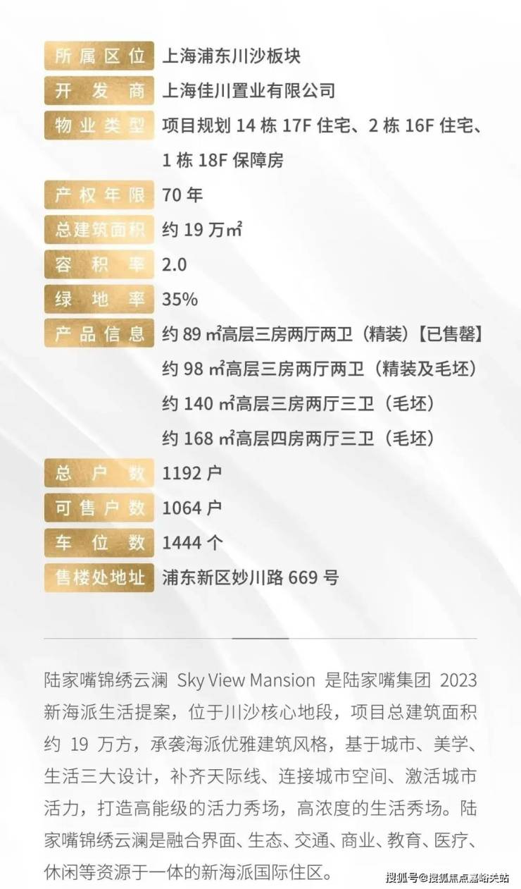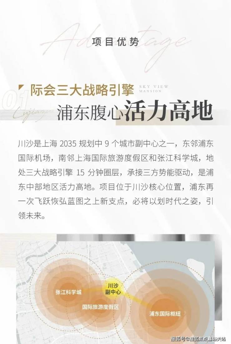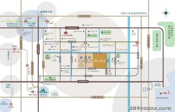 项目位于川沙主城区的核心位置,东至华贵路(规划路),西至在建川沙企业中心二期,南至妙川路,北至润川路。同时根据上海2035总体规划,川沙被规划为九个城市副中心之一,而我们陆家嘴集团也是配合川沙政府的这个规划利好,着力为川沙城市副中心的打造添砖加瓦。与“三大国策”板块紧密勾连。川沙东邻东方枢纽,南邻上海上海国际旅游度假区和张江科学城南部地区,如果说虹桥是上海的西大门,那么川沙就是上海东大门。