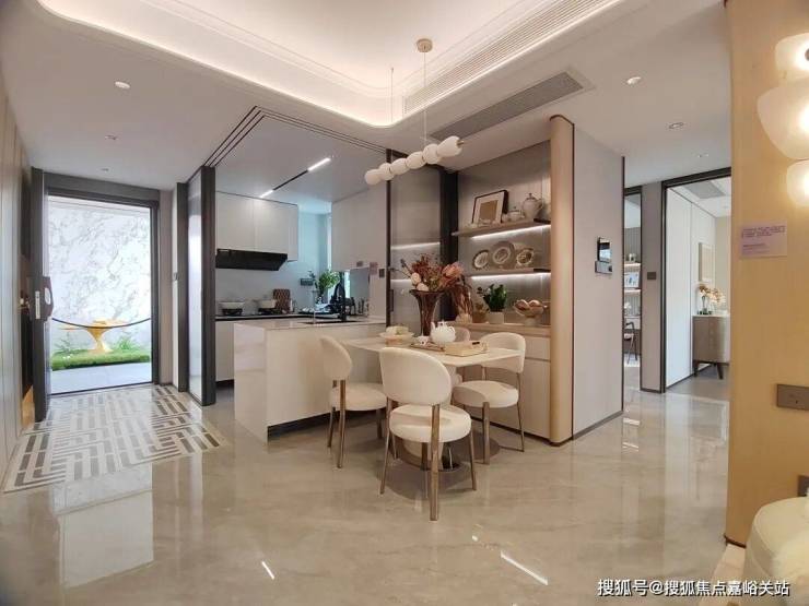 入户门厅以弧形悬浮顶棚为特色,为业主带来柔和温润的归家关怀,让归家的每一步都充满舒适与惬意。