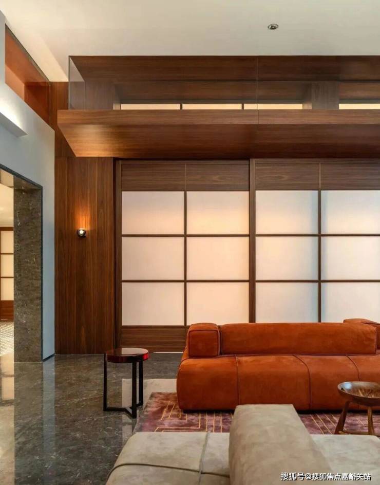 这个木质建筑统一了地下室空间,同时分隔出不同的功能区域。在木质建筑内部,夹层设有榻榻米茶室,下层则是影音娱乐室。大型推拉门让空间在举办派对和接待客人时能够自由流动。