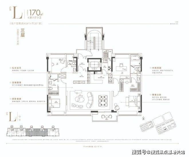 ◐上叠亮点:超强玄关收纳,多储藏室,公共露台空间、中西双厨。