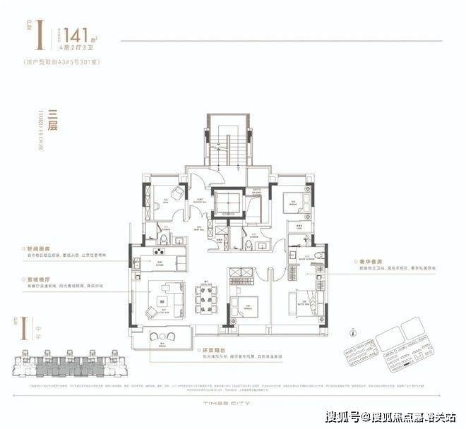 ◐中叠亮点:超大南向面宽,超级大横厅,“墅级”大平层视野。