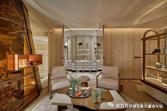在这里,男女主人可尊享各自独立的沙龙空间,也分别配有珍宝阁和休闲区,可展示自身的爱好与收藏,可与好友相约小聚下午茶,也可享受独酌。这无疑是家中可唤醒感官的角落,让自身的品格与态度得以安放,让家空间与居者,相互滋养,相互成就。