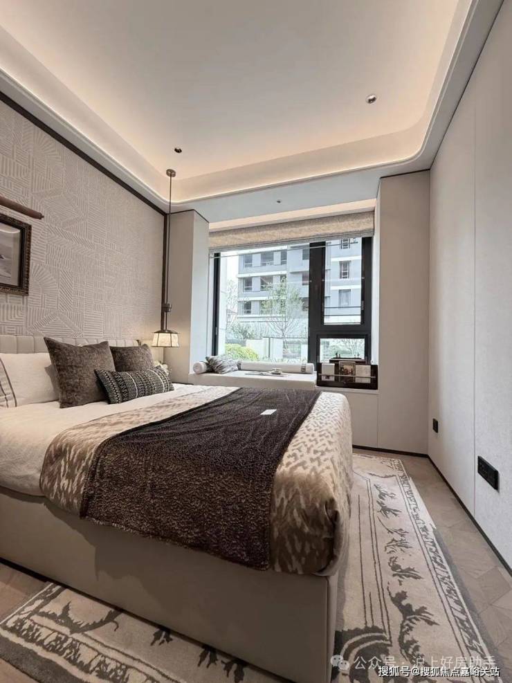 电视背景墙采用卡慕白的石材+皮革造型,弧形吊顶,相当讲究,连空调出风口的形状都打造为海上·清和玺logo山茶花的形状~~三大件为大金(或同等档次)中央空调和地暖,新风系统为百朗(或同等档次),南向阔景阳台,采光视野一级棒!