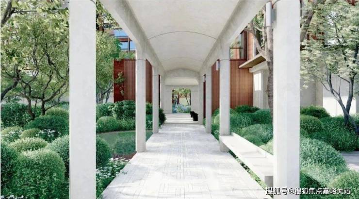 如此一来,每一栋楼的住户都能平等地享受社区会所资源,这种空间结构与“民主人居”的思路不谋而合,堪称先锋布局。渡边智昭先生延续其静谧而高贵的美学,以匠心和艺术灵魂雕塑会所,如一座线性艺术馆,于架空廊下蜿蜒展开,移步换景,在泛会所廊下延展、开合,如东方园林里游园的韵味在空间中浮现。