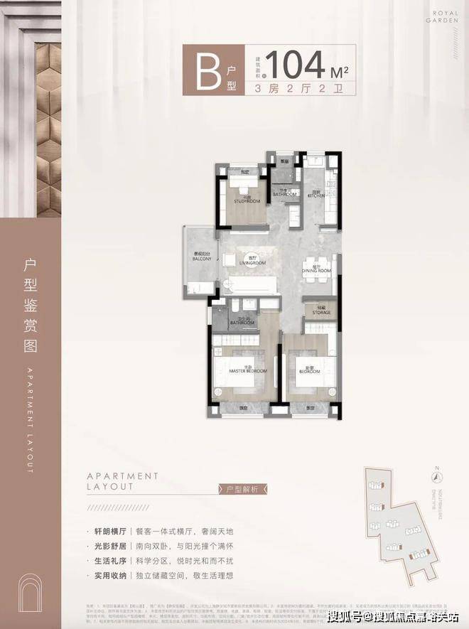 建面约104㎡3房2厅2卫▼