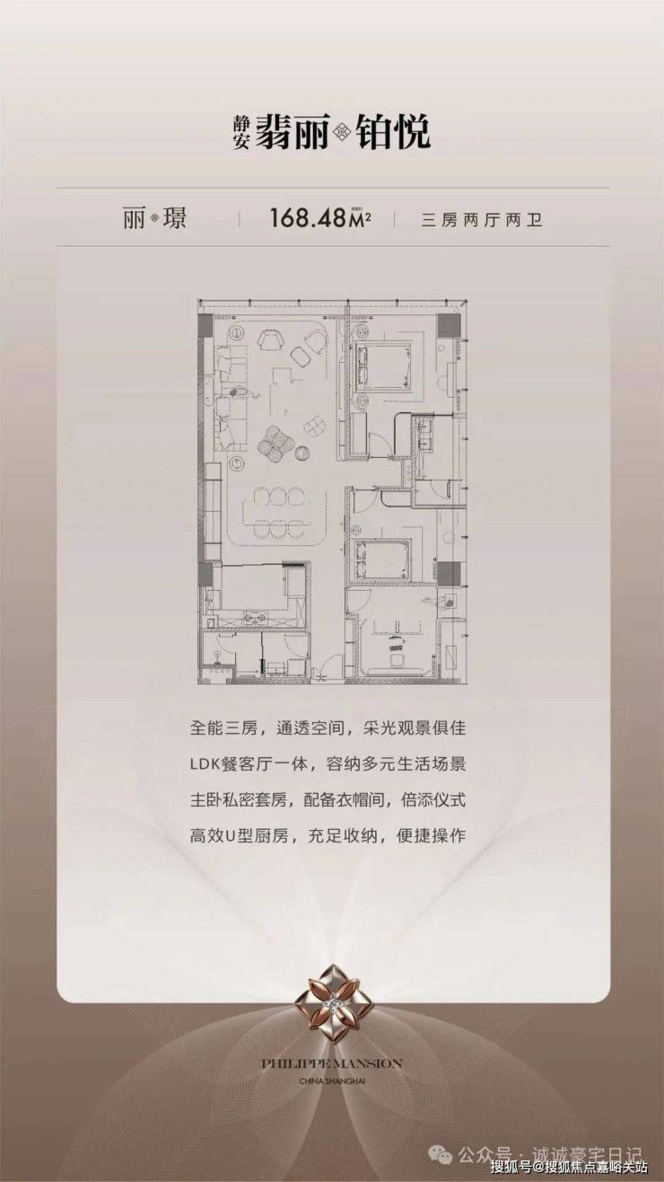 168㎡丽璟户型:三房两卫的“轻奢版”配置,U型厨房与双台盆主卫等细节,彰显“小面积大格局”的智慧。