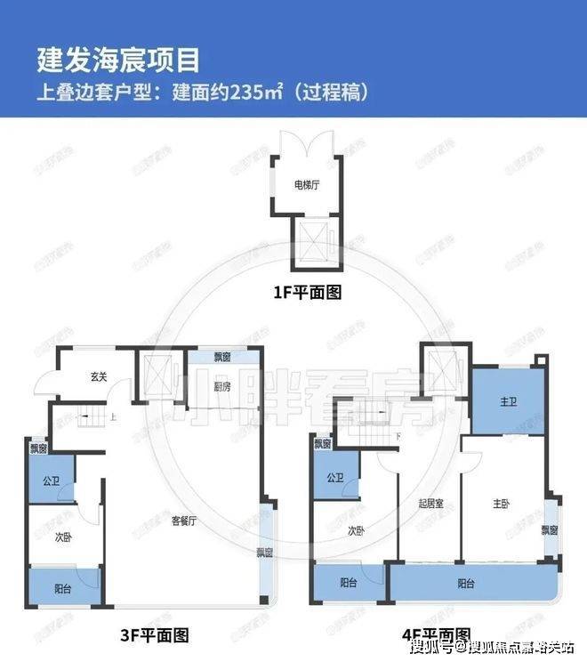 加推1栋建面约125㎡四面宽的小高层,还有1栋四叠新品(228下叠+235上叠)。最新户型图如下: