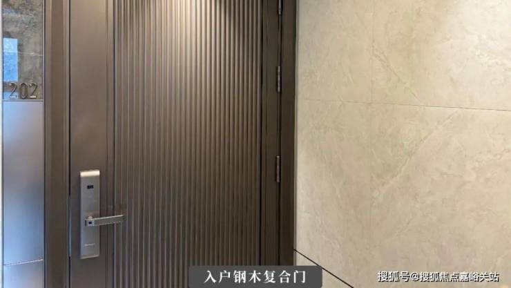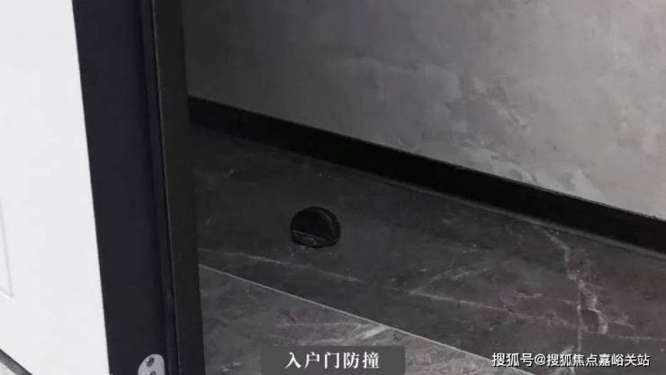门框边缘更是采用天然石材星耀灰及不锈钢板进行搭配,增强了整体的质感,外门亦设置了防碰撞的阻隔器,门的下沿更是增设了防尘条,贴心的为后期业主阻止灰尘的进入。