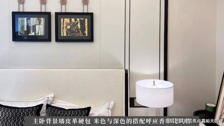 背景墙原本以为最多用上岩板也就够了,想不到项目建面约107㎡科技样板房主卧背景墙居然做到了 皮革硬包,更是镶嵌了金属线条 ,在高端大气的香奈儿风格色调下凸显了温馨的氛围。