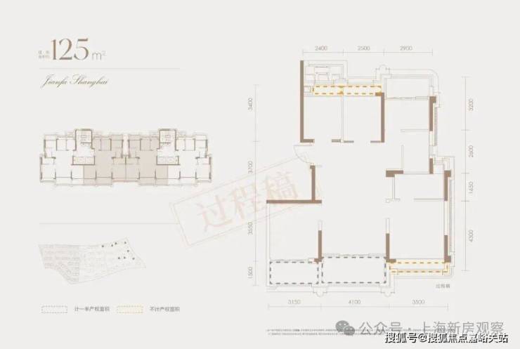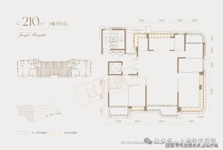 建面约210㎡户型还是类一梯一户设计 ,户户私享建面 超9㎡墅级序厅,双开门、双玄关、双动线入户,仪式感私密性爆表。 该户型整体的实得率接近95%,远超同板块其他二手小区,在整个上海也是罕见对手!