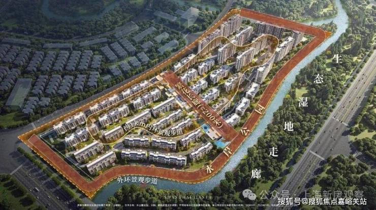 并依托约1.5公里的滨水长廊,将约 11.4公顷生态湿地 融为业主的后花园,借景河道,构筑多元生活剧场,穿过 外滩晨钟、闲渡蒹葭、溪川雪霁, 恍如在穿越时空的海派画卷中悠然漫步。