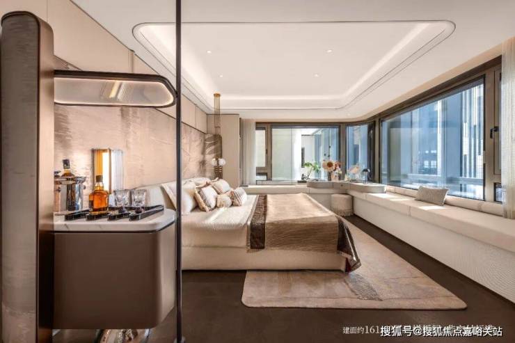 建面约30㎡行政级主卧套房, 重新定义“主卧小家化”概念,休憩、休闲、衣帽、卫浴有序布局;270°全景转角飘窗,将滨水风光尽数收藏。