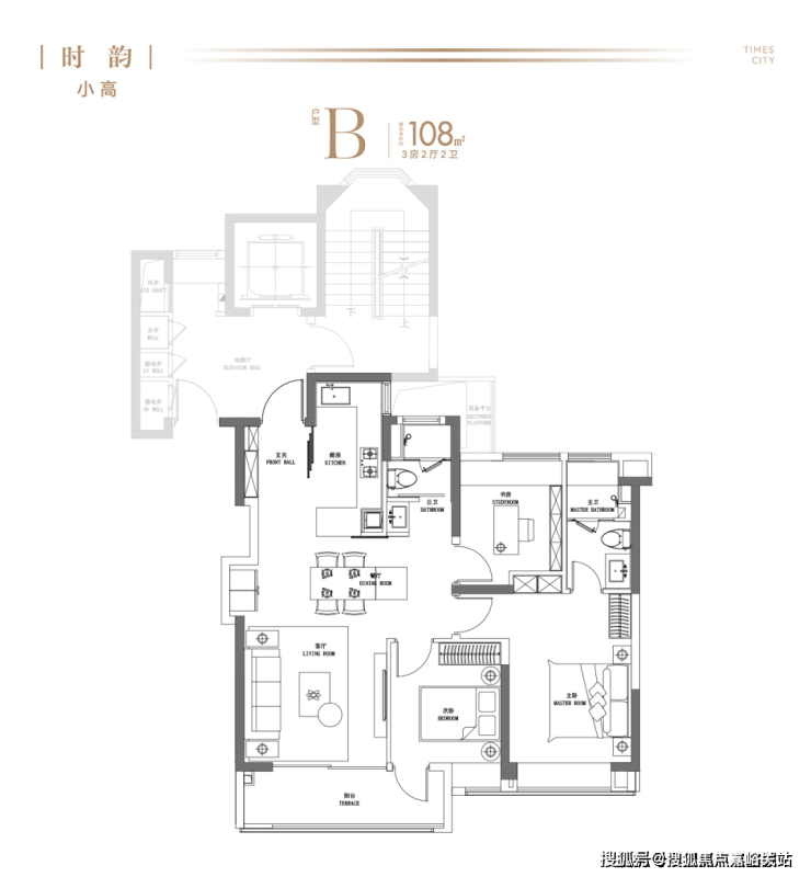 建面约108㎡3房(小高)实用且更有温度的“家庭生活中心”