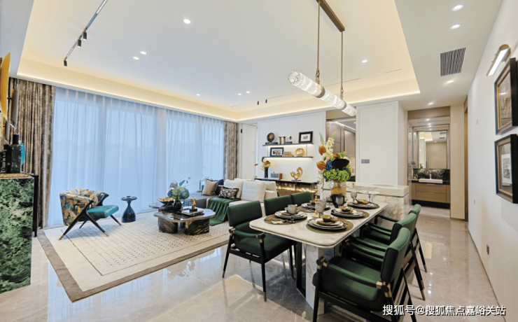 中厨可做独立空间,也可以完全敞开,与西厨餐厅相连, ☑️☑️国贸海屿佘山售楼处电话:400 - 8377 - 020☑️☑️整个空间打开,更加宽敞。