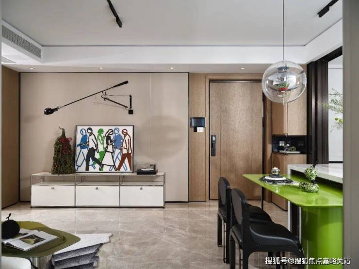 走到样板间门口,这个顶天立地的门,通透感极强。