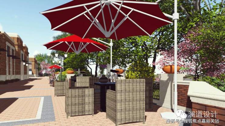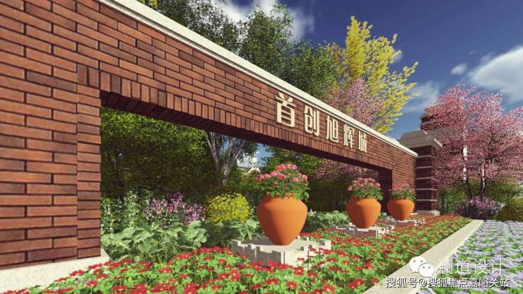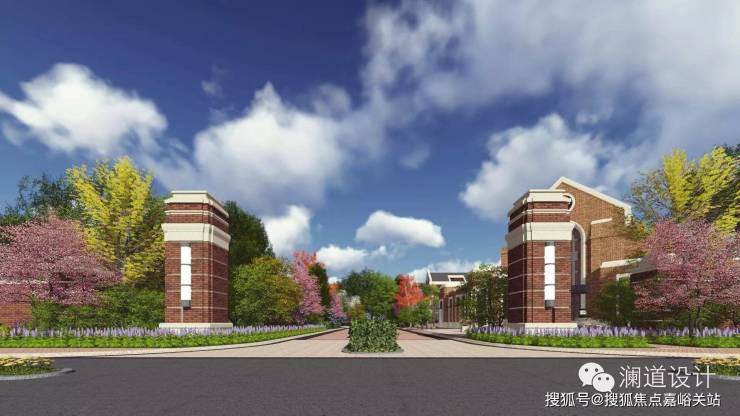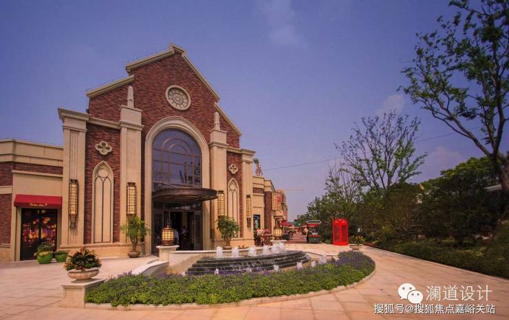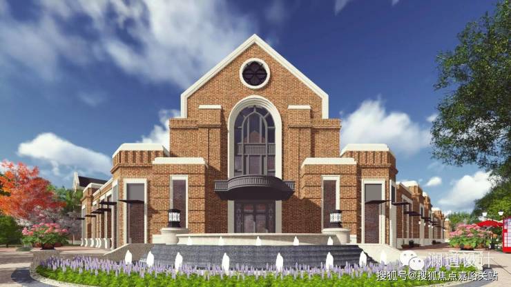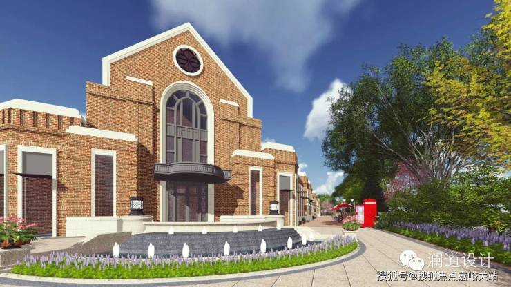 以英式教堂风格建筑为背景的售楼处前广场,透露出传统英伦的独特气息;入口处庄重的红砖立柱与红砖景墙,既有文化的沉淀,又有经典的浪漫情怀;售楼处前的水景演绎着经典,提升了整个前广场的气质与内涵。