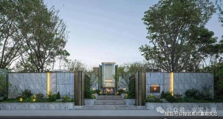 借鉴思南公馆经典的三重归家礼序,项目巧妙利用原始地形打造拥有约2米高差的归家台地,特别设计"三升九阶"的三段式台阶,寓意"步步登高、层层递进、终臻圆满"。