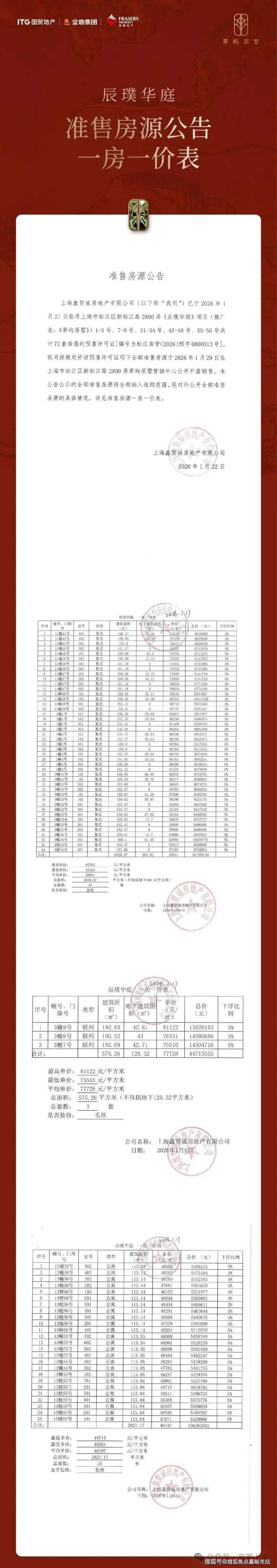 在2025年2月举行的上海首轮土拍中,国贸+金地+星狮地产联合体击败建发,以8.15亿的总价,溢价率13.98%,拿下松江新城05a-24号地块(即萃屿原墅),地块成交楼板价26216元/平,装标不低于2500元/平。