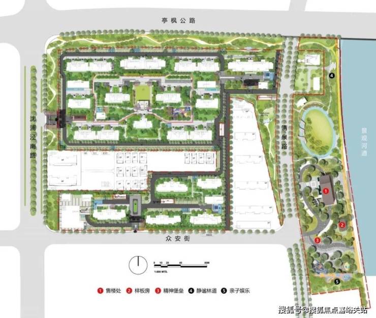 项目东侧紧邻黄浦江的上游河道——掘石港,将打造全长约2公里的西岸绿化景观步道,约1.5公里长的跑道、沿河景观大道,人文走廊、儿童老人休闲区等小品也将穿插其中。