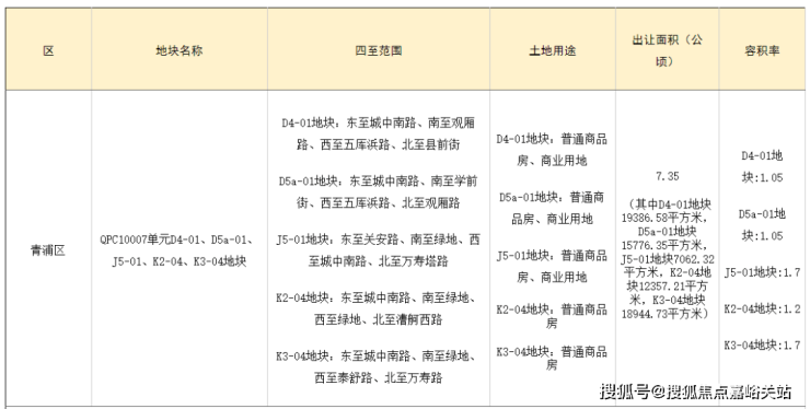青浦区QPC10007单元D4-01、D5a-01、J5-01、K2-04、K3-04地块