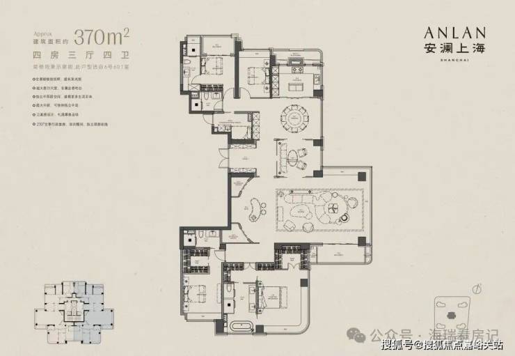 本次入市均价约17.88万/㎡,主力户型为建面约192/238/275/365㎡改善大平层。项目是上海首个全域抬板豪宅社区,涵盖多阳台+全景舱等创新设计,将于12月26日开盘。