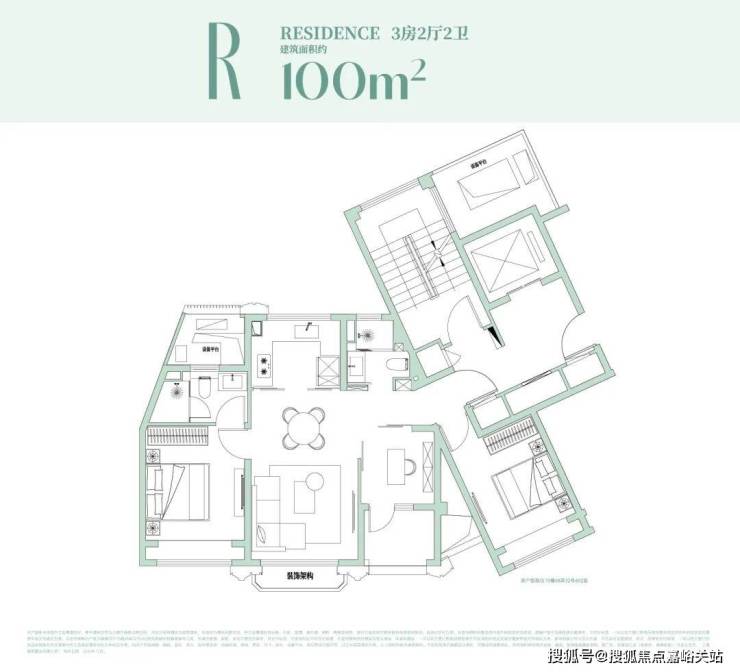 约99㎡户型设计:经典飞机户型格局!独立观景阳台!