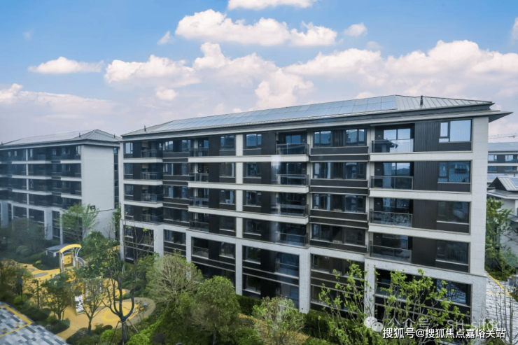 新亚洲国际建筑风尚,搭配独特的坡屋顶,灰色陶瓦结合金属挑檐设计,约35°倾斜稳定结构防积水,楼体形态和谐、黄金比例赋予建筑独一无二的美。