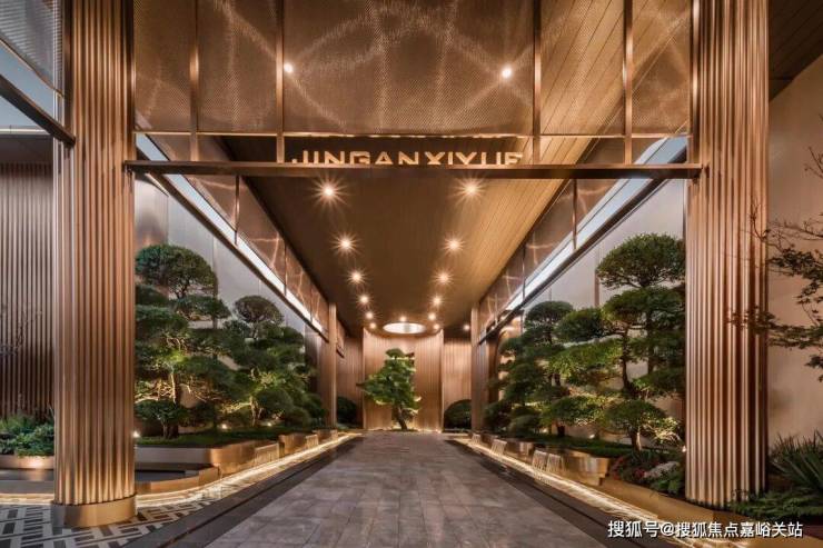 给大家秀一波静安玺樾美学示范区实景图!入口是酒店港湾式落客空间,一棵充满艺术感的造型树,蓝翡翠奢石点缀,提升整体品质感。内部是一座精致典雅的水院,艺术雕塑、喷泉水幕、造型树经典组合,仿若一座海派艺术公园~